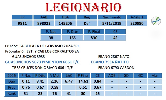 | Un toro para masificar. Largo correcto en sus aplomos, excelente línea inferior, blando y de muy buena CE. Muy buenos datos de crecimiento en todos sus deps. FACILIDAD DE PARTO PROBADA Toro de La Bellaca de Zuza, usado masivamente en Los Corralitos, donde ya varias generaciones del mismo, muestran la fuerza con que imprime todas sus cualidades. Por padre, PIMENTON; Picante x Ciriaca “Rda Gran Campeona Palermo. Su Madre, una importante donante, hija de Ñatito. |