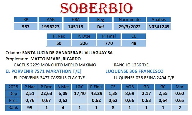 Toro de impactante profundidad y potencia, con gran calidad racial en su frente y fuerte estructura ósea.