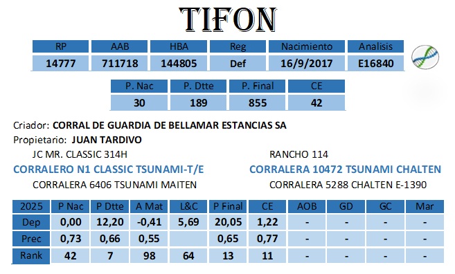 | Lote 1 en el Remate de Corral de Guardia 2020. Un toro sumamente completo. Se destaca por su balance en todo, aplomos, calidad, carne, volumen y suave en las paletas. Todo esto acompañado por un pedigree soñado: tiene como abuelo paterno a Transformer y luego dos veces en su pedigree a Sumami, que es hijo del legendario Sundance. También Chaltén. En definitiva, toda la potencia de los clásicos. La combinación perfecta entre pedigree y físico. Otro padre muy importante, como nos tiene acostumbrados Corral de Guardia. SUMAMENTE BALANCEADO EN TODO. |